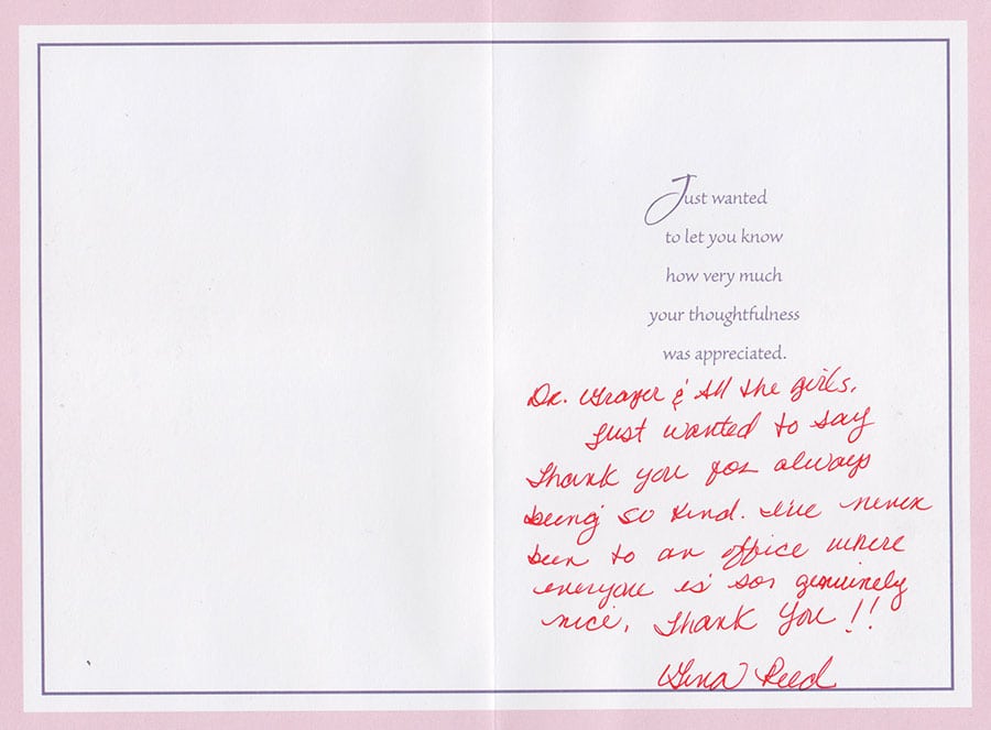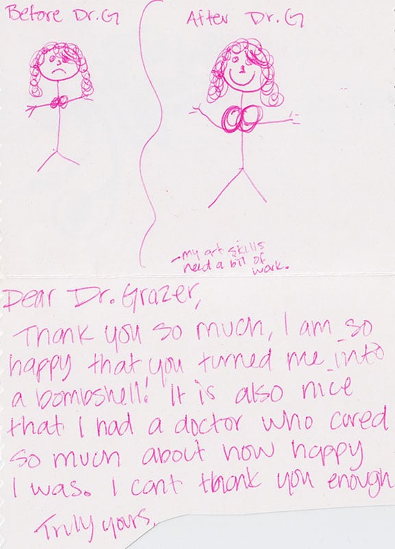 Thank you Dr. Grazer for always taking care of our referrals we send to you! Patients call back to tell us about their amazing experience with you and your staff and how easy their surgery was!
